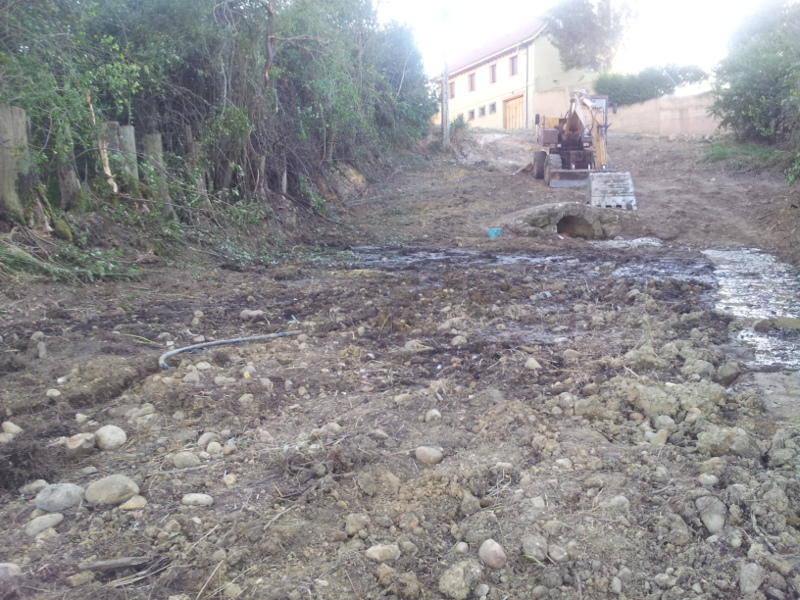 Se inicia la obra con un desbrozado y terraplenado de finca, modificando la fuerte pendiente del terreno con una nivelación, para acceso a ésta, mediante medios mecánicos para posterior vallado.