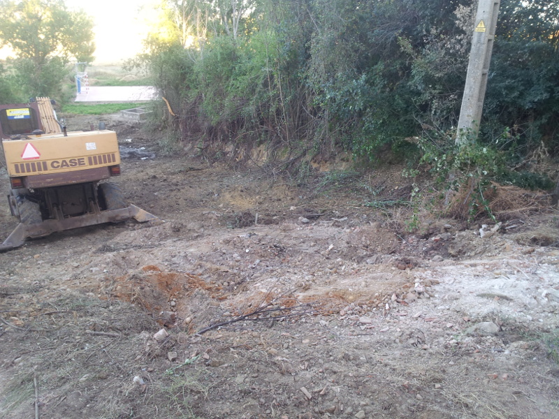 Se procedió a la retirada de maleza y arbustos con el cazo de la máquina retroexcavadora, siendo posteriormente retirados de la finca. Para la limpieza de la finca, se dieron varios pases de máquina con la cuchilla delantera, nivelando el terreno. Se sacaron 2 camiones bañera de tierra y material vegetal a planta de reciclaje.
